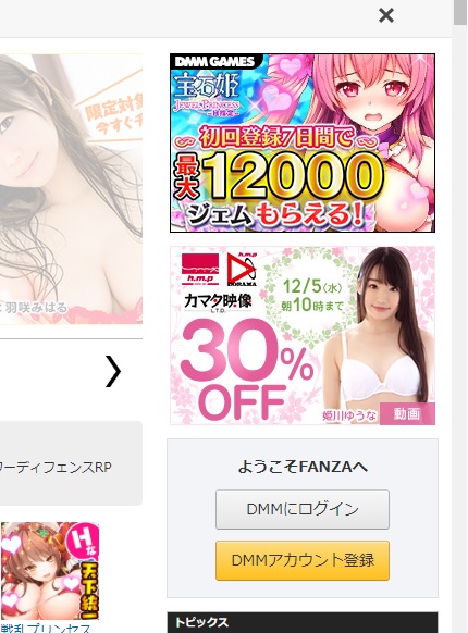 DMMトップ画面右上の