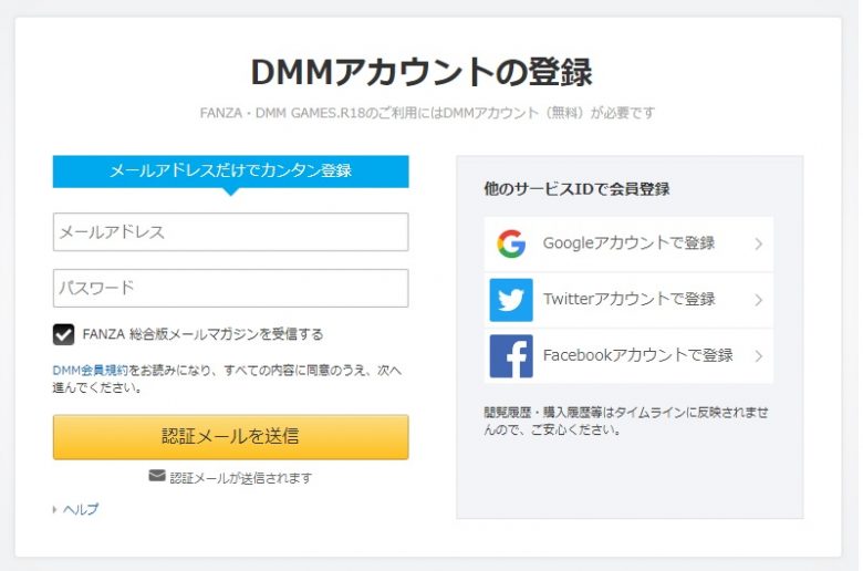 DMMアカウントの登録画面から、