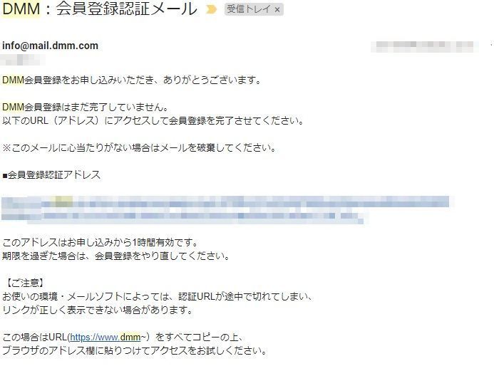 登録したメールアドレスに「DMM:会員登録認証メール」が届きます。